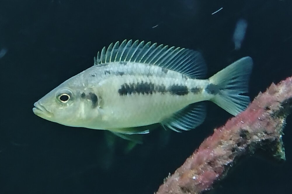 Cześć wszystkim Zastanawiam się czy możliwe jest skrzyżowanie między gatunkami Dimidiochromis Strigatus a Stigmatochromis Tolae? Sprawa wygląda tak. Miałem stadko Strigatusów 1+3 oraz Tolae w konfiguracji 2+1. Samice Strigatusów non stop inkubują pomimo tego, że samiec był maksymalnie "cherlawy", w ogóle bez ubarwienia i chyba męczony jakimś pasożytem czy inną chorobą i w ogóle się nimi nie interesował. Samica Stigmatochromisa też kilka razy inkubowała. Jakiś czas temu objawił się w akwarium podrostek, który dzisiaj już ma około 4cm i wg mnie nie wygląda ani jak Stigmatochromis ani jak Strigatus (na zdjęciu poniżej). Stąd moje pytanie, czy taka krzyżówka jest możliwa?